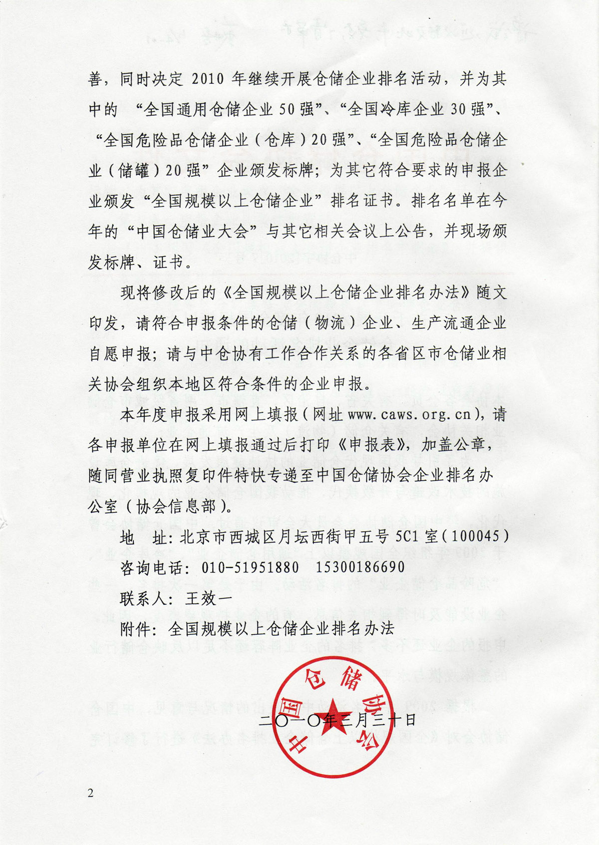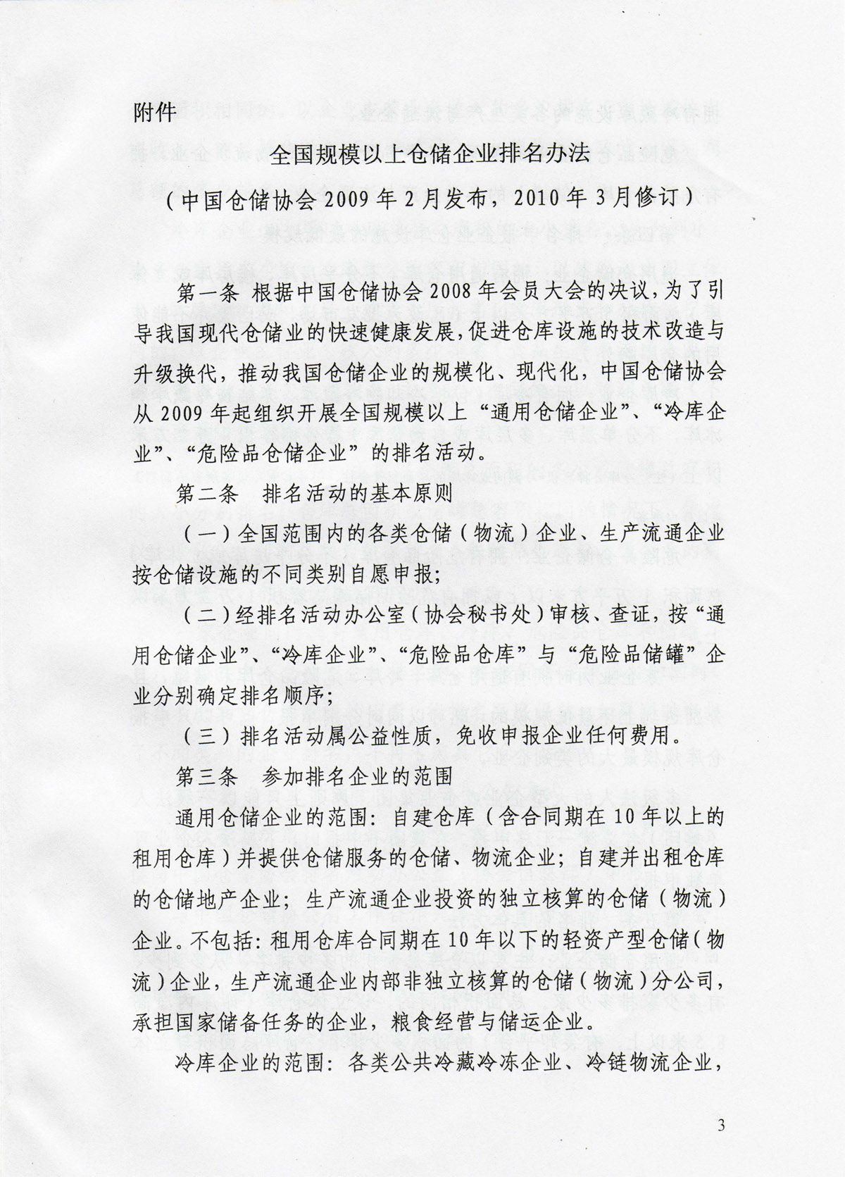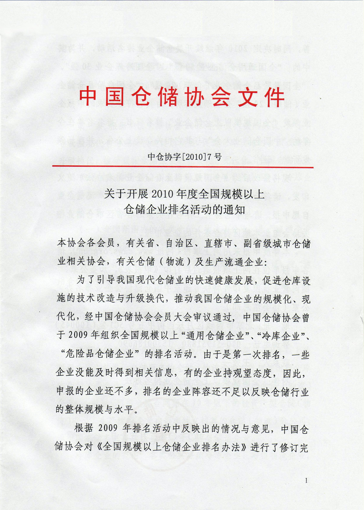 关于开展2010年度全国规模以上仓储企业排名活动的通知