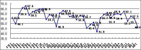 中国非制造业商务活动指数走势图(%)