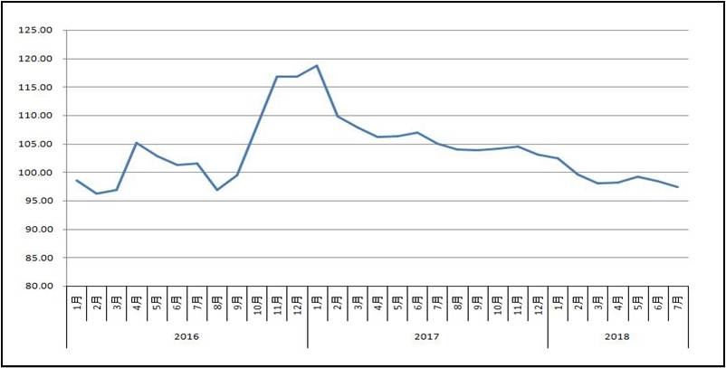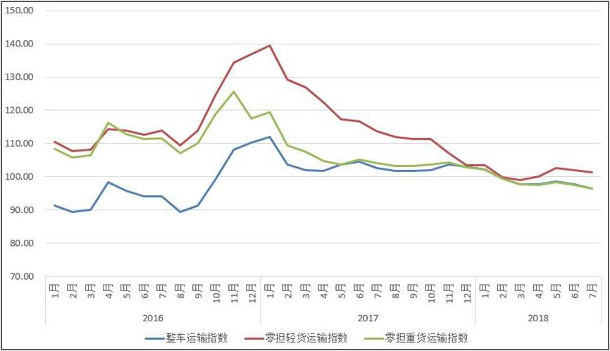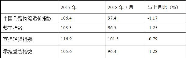 由优米官网首页下载和林安物流集团联合调查的中国公路物流运价指数2018年7月为97.4点,比上月回落1.16%。