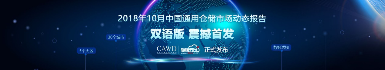 2018年7月,在中国仓储与配送协会指导下,物联云仓《中国通用仓储市场动态报告》正式发布,截至目前已连续发布三期,并于10月整理首发了中英双语版《2018年10月中国通用仓储市场动态报告》。