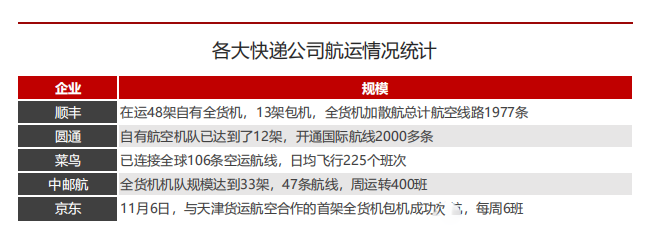 随着战局推进,目前快递企业间的战争逐步演化成“航空战”。顺丰、圆通、菜鸟、京东、EMS等快递公司纷纷在航空机队、建仓织网等方面发力跨境物流领域。