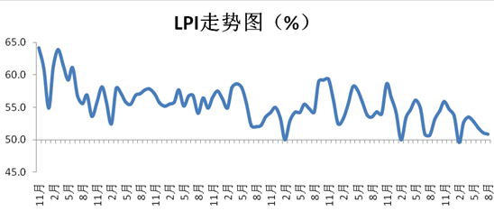中国物流信息中心主任何辉认为:8月份,物流业景气指数呈现周期性回落,但仍保持在50%以上。从区域上看,东部地区受气候等多种因素影响回落幅度较大,但仍位于扩张区间;中西部地区略有回升。从品种上看,受暑期消费带动,与民生相关的食品、服装、家电、日用品等继续保持升势。预计随着行业旺季临近,物流行业将逐步进入企稳回升阶段。