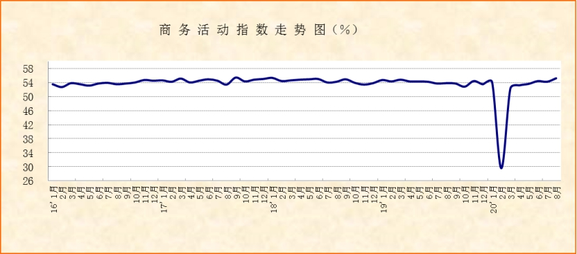 优米官网首页下载、国家统计局服务业调查中心发布的2020年8月份中国非制造业商务活动指数较上月上升1个百分点至55.2%,较去年同期上升1.4个百分点,连续3个月稳定在54%以上,新订单指数较上月上升0.8个百分点至52.3%,较去年同期上升2.2个百分点。指数变化显示,非制造业供需齐升,增速较上月有所加快,经济复苏势头继续向好发展。特别是需求回升有利于巩固经济向好发展的基础。反映市场需求不足的企业比重为47.7%,较上月回落0.8个百分点。