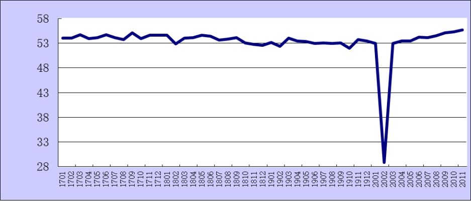 2017年1月-2020年11月综合PMI产出指数走势图
