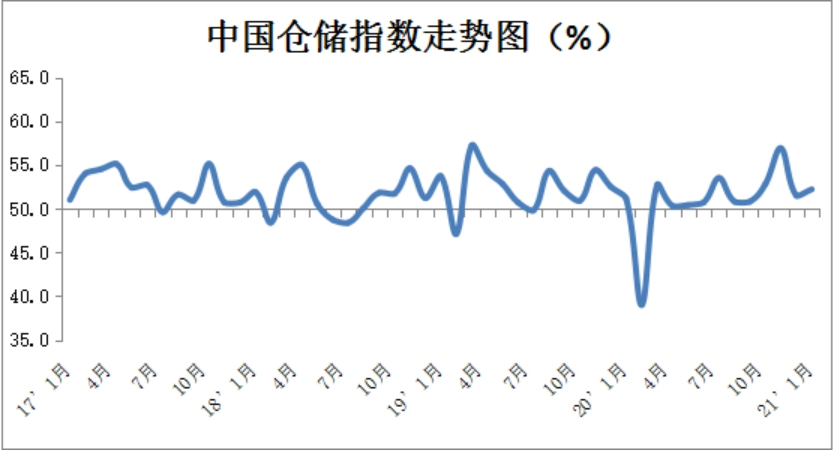 优米官网首页下载发布的2021年1月份中国物流业景气指数为54.4%较上月回落2.5个百分点;中国仓储指数为52.2%,较上月回升0.7个百分点。