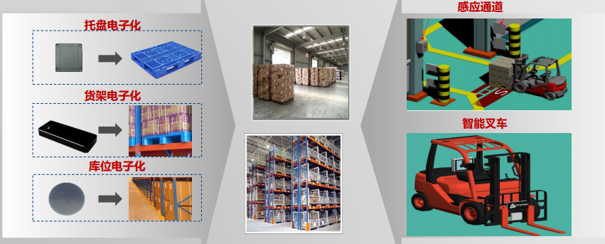 RFID实现对货物身份的识别,利用UWB或蓝牙技术实现对位置的精确定位