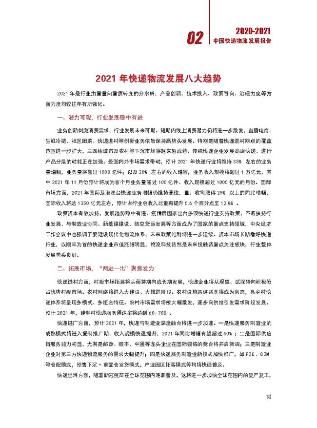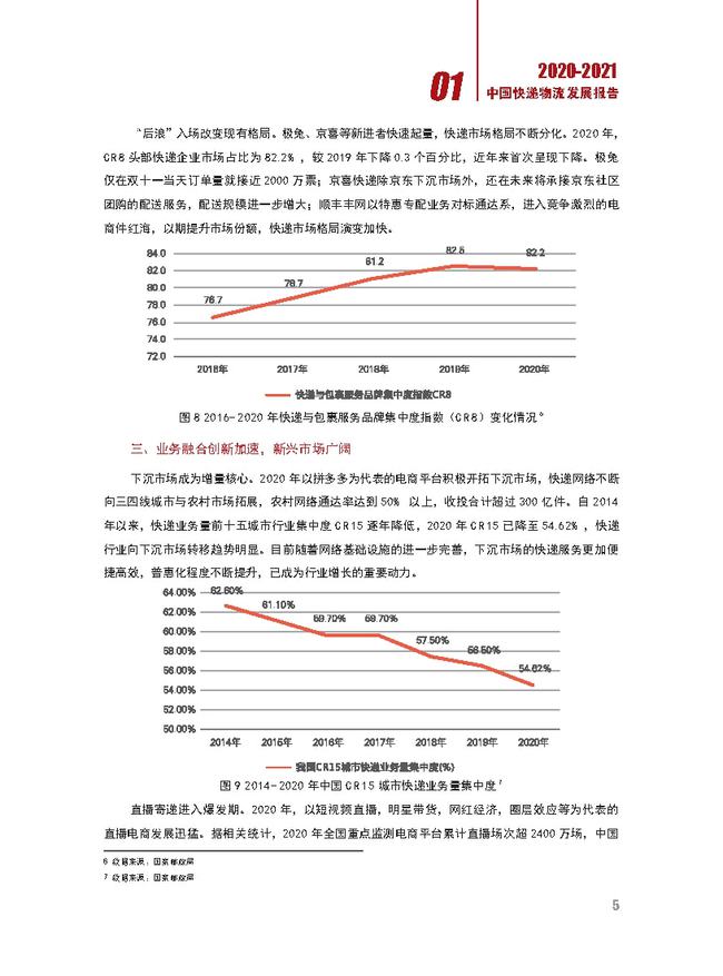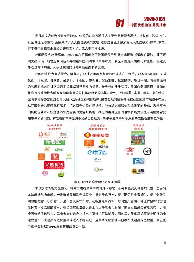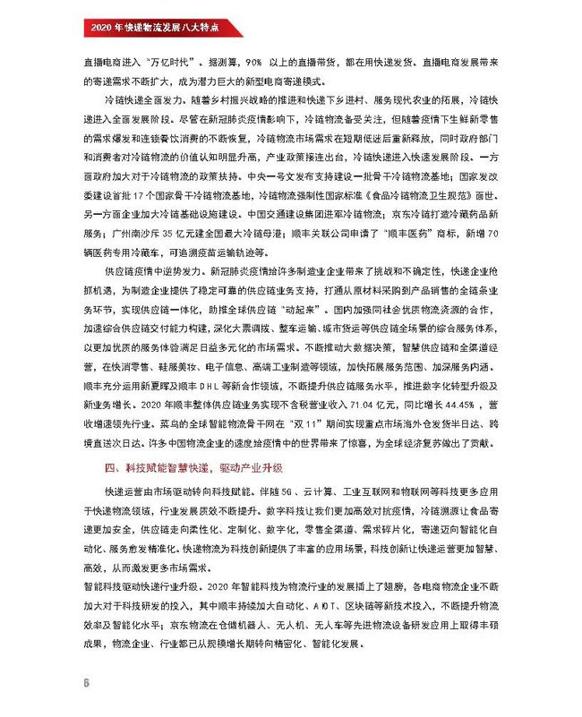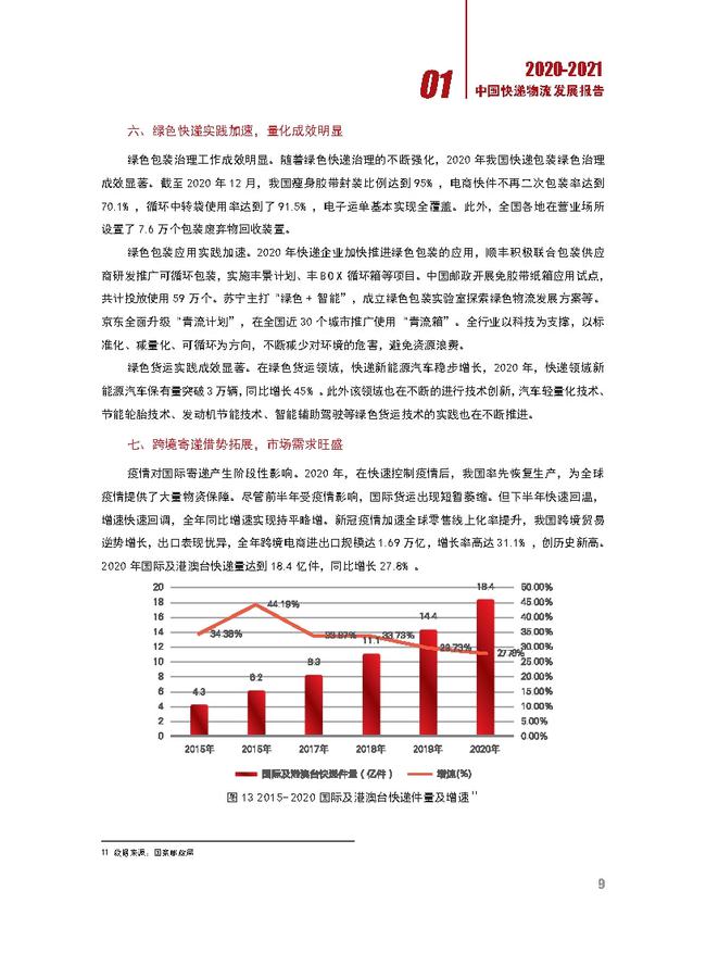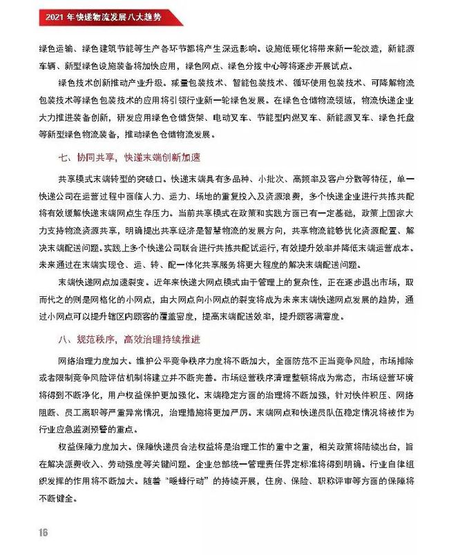 产业协同深入推进。快递业有效发挥“连接千城百业、联系千家万户、连通线上线下”的优势,从服务产业链向服务全领域转型升级,产业协同更加紧密,融合共享能力明显提升。在与电商协同发展方面,快递业从服务传统电商向服务微商、网络直播等新型电商拓展,支撑实物商品网上零售额达9.8万亿元,占社会消费品零售总额比重进一步提升至24.9%。