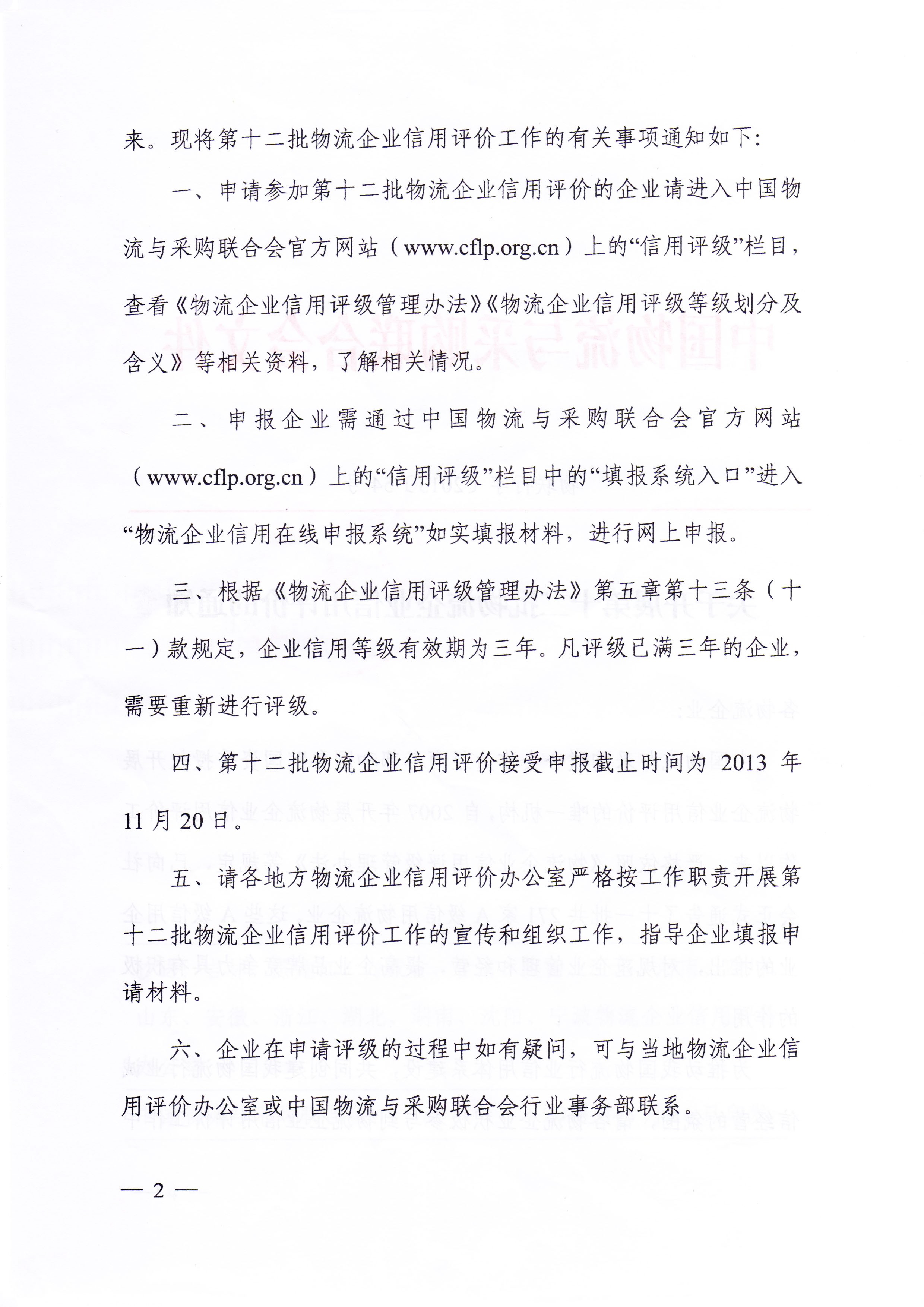 关于转发中物联《关于开展第二十批物流企业信用评价的通知》的通知