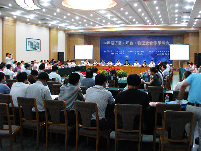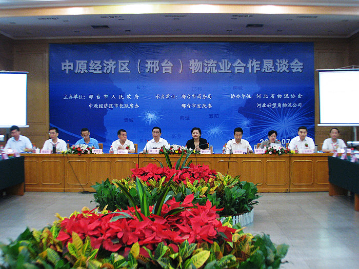 中原经济区(邢台)物流业合作恳谈会在邢台隆重举行 中原经济区(邢台)物流业合作恳谈会会议主席台 7月23日,由邢台市人民政府、中原经济区市长联席办主办,邢台市商务局、邢