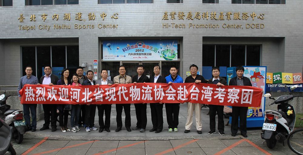 图为省现代物流协会林炳禄秘书长、冯美卿部长带团赴台北内湖科技园区考察时合影