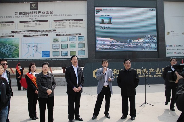 唐山万和国际物流有限公司董事长唐会占向参观者介绍公司的有关情况