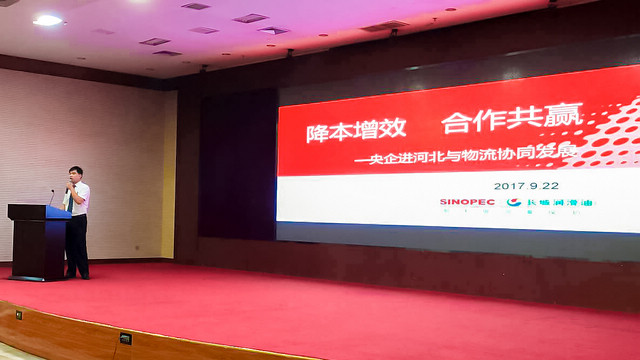 中国石化润滑油有限公司河北代表处张九洲经理介绍了“央企进河北,合作共赢求发展”的做法及企业主要产品概况