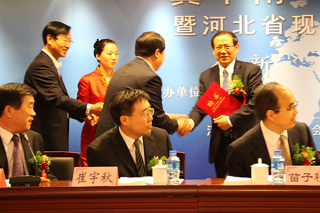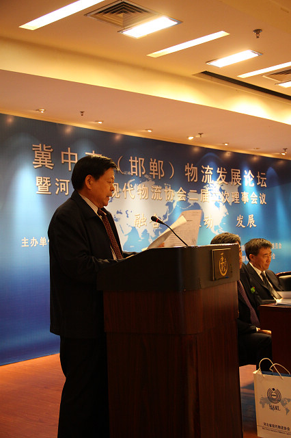大会议程继续进行,由河北省现代物流发展领导小组办公室副主任、省发改委服务业处处长苗子簃介绍省物流发展形势及"十二五"现代物流发展规划,邯郸市发改委副主任武庆珍介绍邯郸市物流业发展情况。