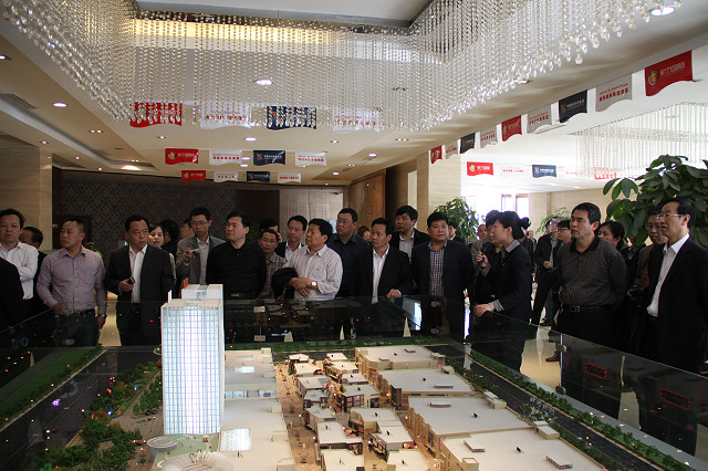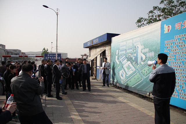 与会人员乘车考察观摩邯郸市新兴国际商贸物流产业聚集区