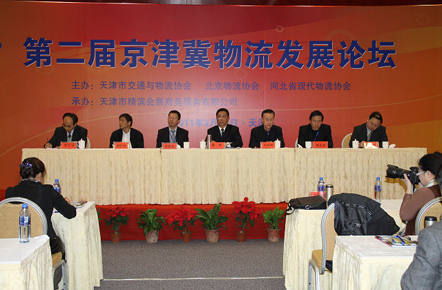 第二届京津冀物流发展论坛在天津举行 第二届京津冀物流发展论坛会议主席台 2011年3月16日9时,第二届京津冀物流发展论坛在天津市滨海新区会展中心举行。论坛由天津市交通与物流协