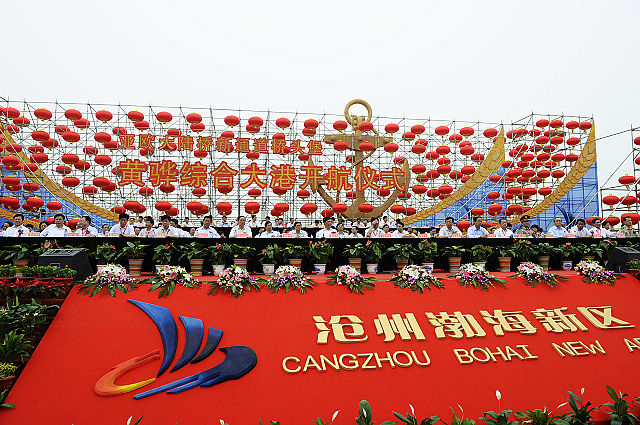 渤海起大港,当惊世界殊。2010年8月18日上午,“亚欧大陆桥新通道桥头堡——黄骅综合大港开航仪式”在黄骅港综合港区码头隆重举行,标志着沧州东部沿海区域开发建设进入了一个崭新阶段。中共中央政治局常委、全国政协主席贾庆林作出批示,对黄骅综合大港通航表示热烈祝贺!