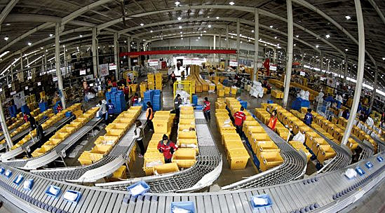 网上零售商亚马逊以对其仓储和配送操作进行自动化和开发多种不同类型的机器人和自动化过程而闻名。自动化程度如此之高,故亚马逊现可做到在美国至少14个大城市区域内当天送达货物。