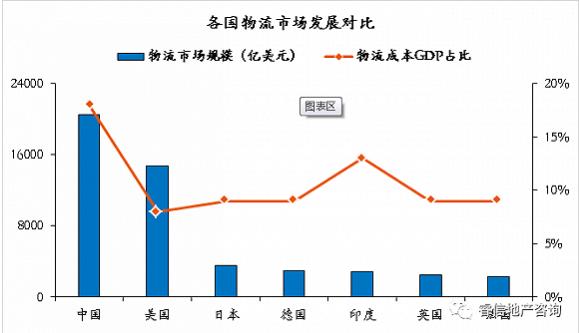 截止11日24时,备受全民追捧的“双十一”全球购物狂欢节以天猫商城全天交易额刷新记录的1682亿告一段落,从09年不足5000万元到17年1682亿的交易金额的增长,连同京东商城累计超过1200亿元、苏宁易购163%的增速,无不显示着电商行业的极速成长,而其背后8.12亿的订单数量正告诉地产企业物流地产的市场机遇正逐步显现。 国内物流市场规模早在2012年就超越美国位居世界第一(2015年达到2万亿美元,超过美国1.5万亿美元),但从物流成本及基础设施建设来看,整体物流效率偏低,超过70%的现有物流设施建于1990年前,特别是现代化物流设施不足1亿平米,占比不足20%。