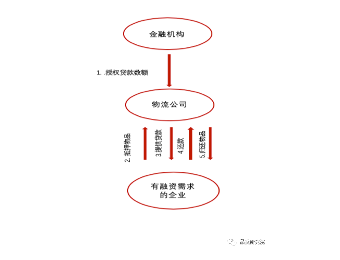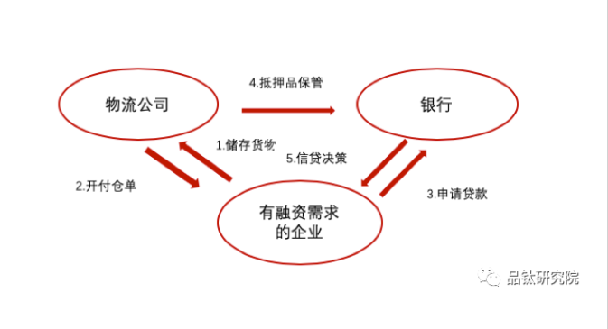 仓单质押模式——有融资需求的企业客户将货物存储在物流公司的仓库,依靠仓单向银行申请贷款,银行根据商品价值向客户提供一定比例的贷款。抵押货物的监督和保管由物流公司负责。