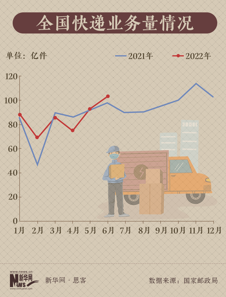 国家邮政局数据显示,今年上半年全国快递服务企业业务量累计完成512.2亿件。根据国家邮政局此前报告,2021年,全国快递业务量完成1083亿件,首次突破千亿件。 而目前在疫情影响下,全国半年快递业务量仍然超过了500万亿件。