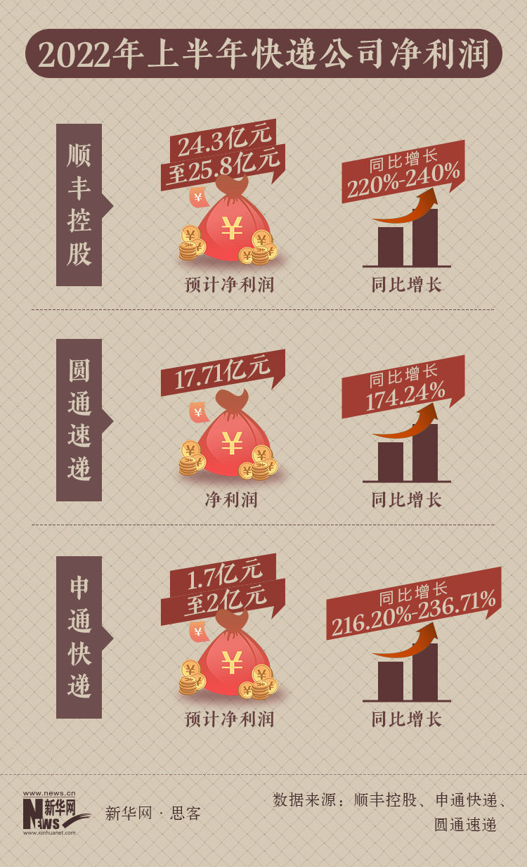 各大快递公司也陆续发布上半年业绩报告,显示出市场整体回暖向好态势。其中顺丰控股实现净利润预计在24.3亿元至25.8亿元,同比增长220%至240%;圆通上半年实现净利润17.71亿元,同比增长174.24%;申通也终于扭亏为盈,预计实现净利润1.7亿元至2亿元,同比增长216.20%至236.71%。